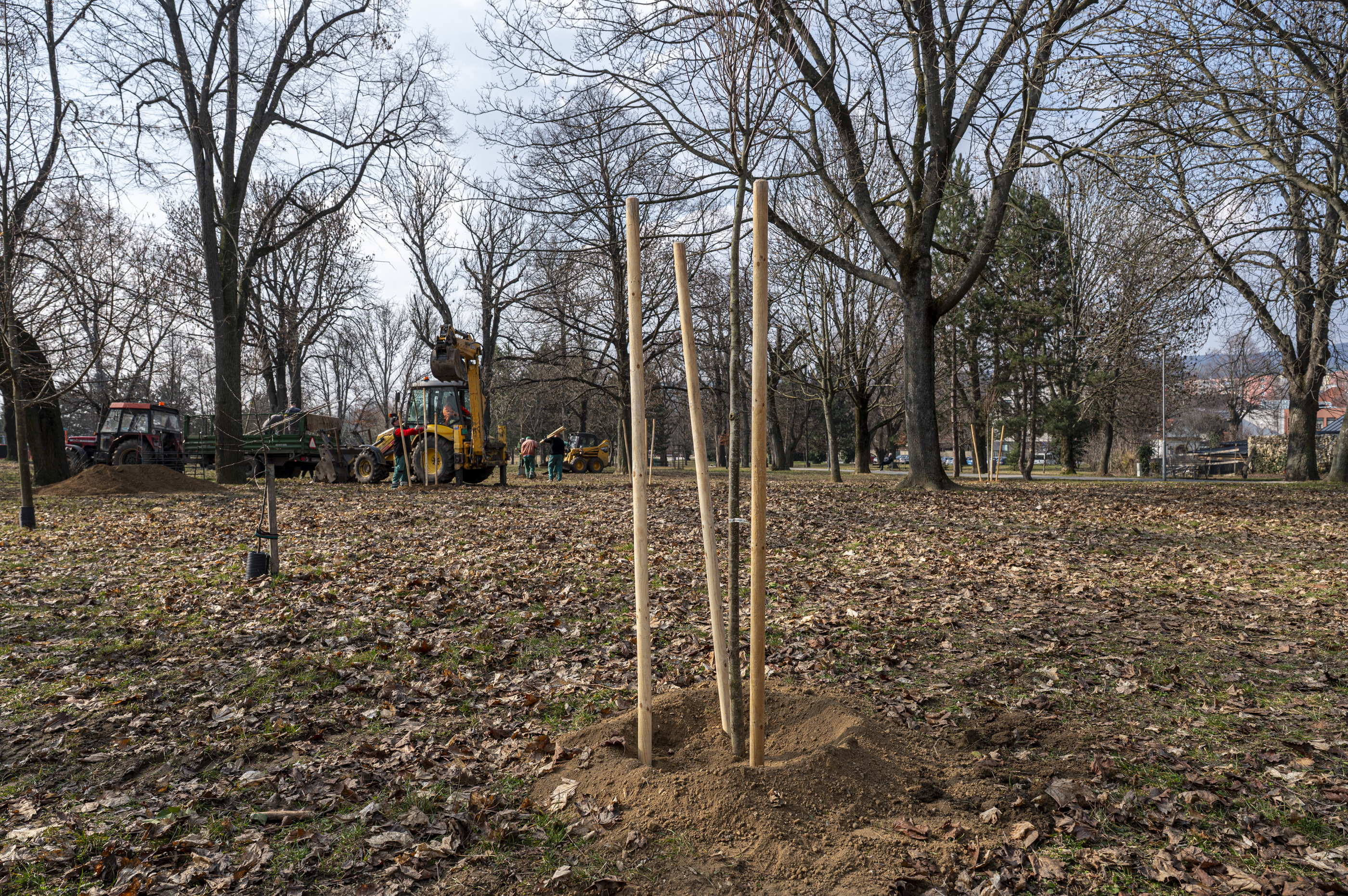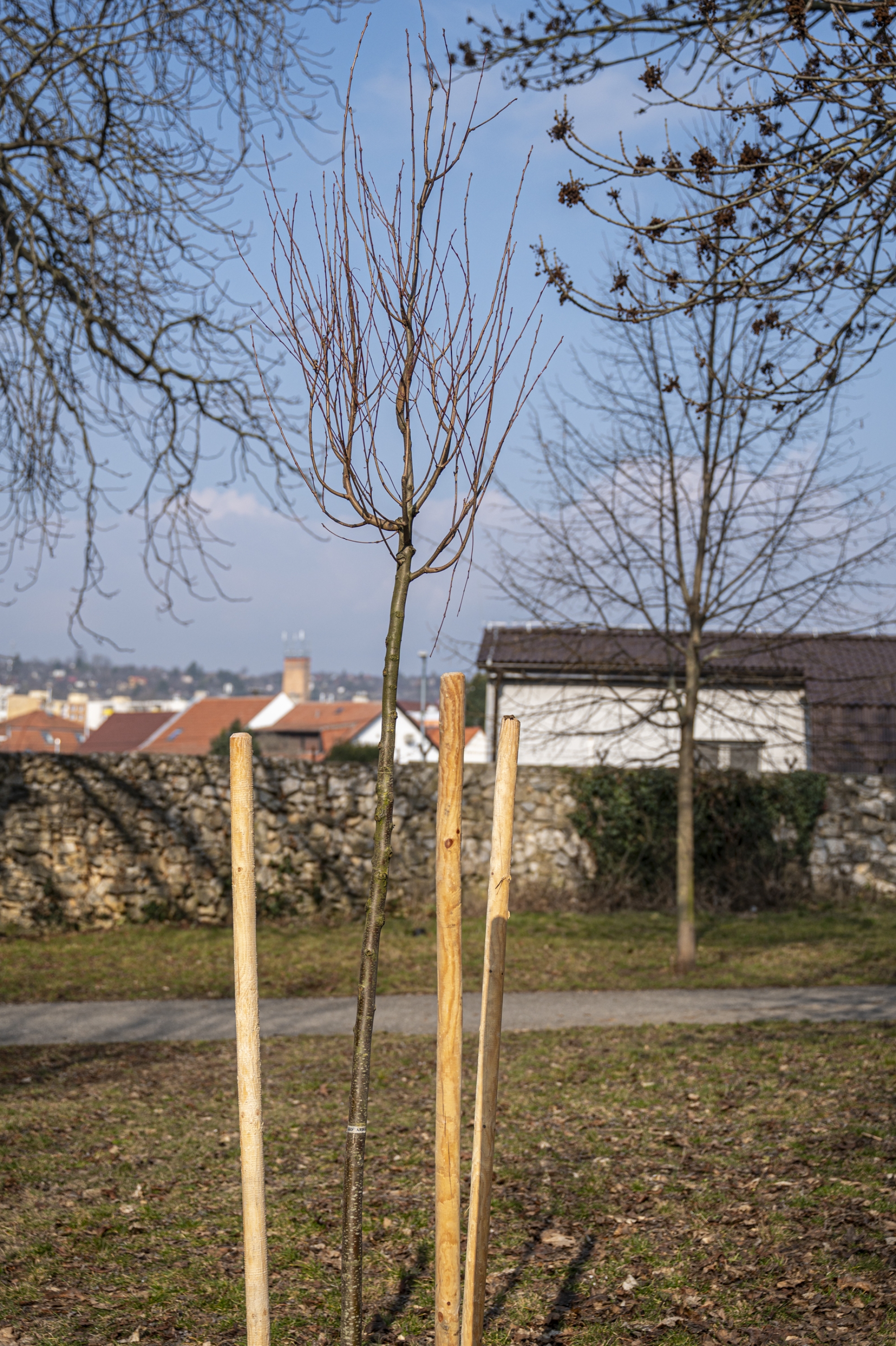 Aby mali nové dreviny čo najlepšie podmienky na zakorenenie, každý strom je stabilizovaný pomocou troch až štyroch podporných kolov, ktoré zabezpečujú stabilitu počas prvých rokov rastu. Kmeň stromu je zároveň chránený ochrannými chráničkami, ktoré znižujú riziko mechanického poškodenia.