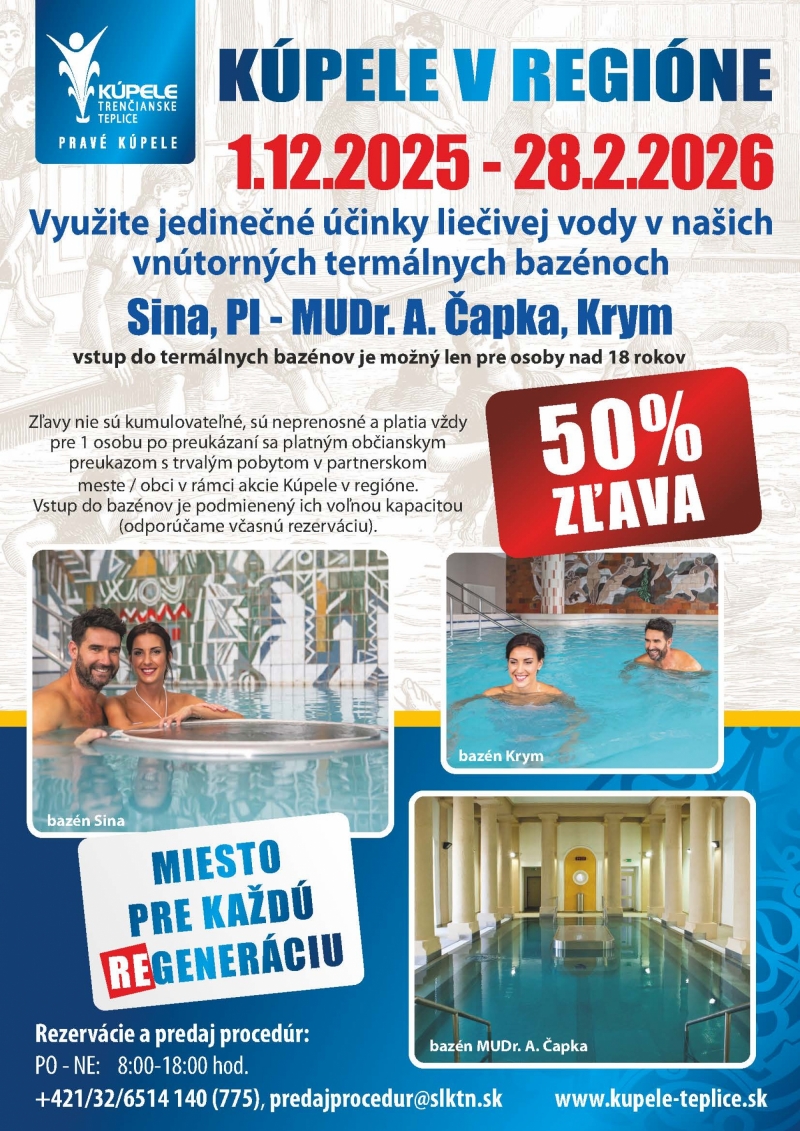 už 13. ročník obľúbeného projektu „Kúpele v regióne“ prináša možnosť využiť zľavnené vstupy do vnútorných termálnych bazénov v Trenčianskych Tepliciach.