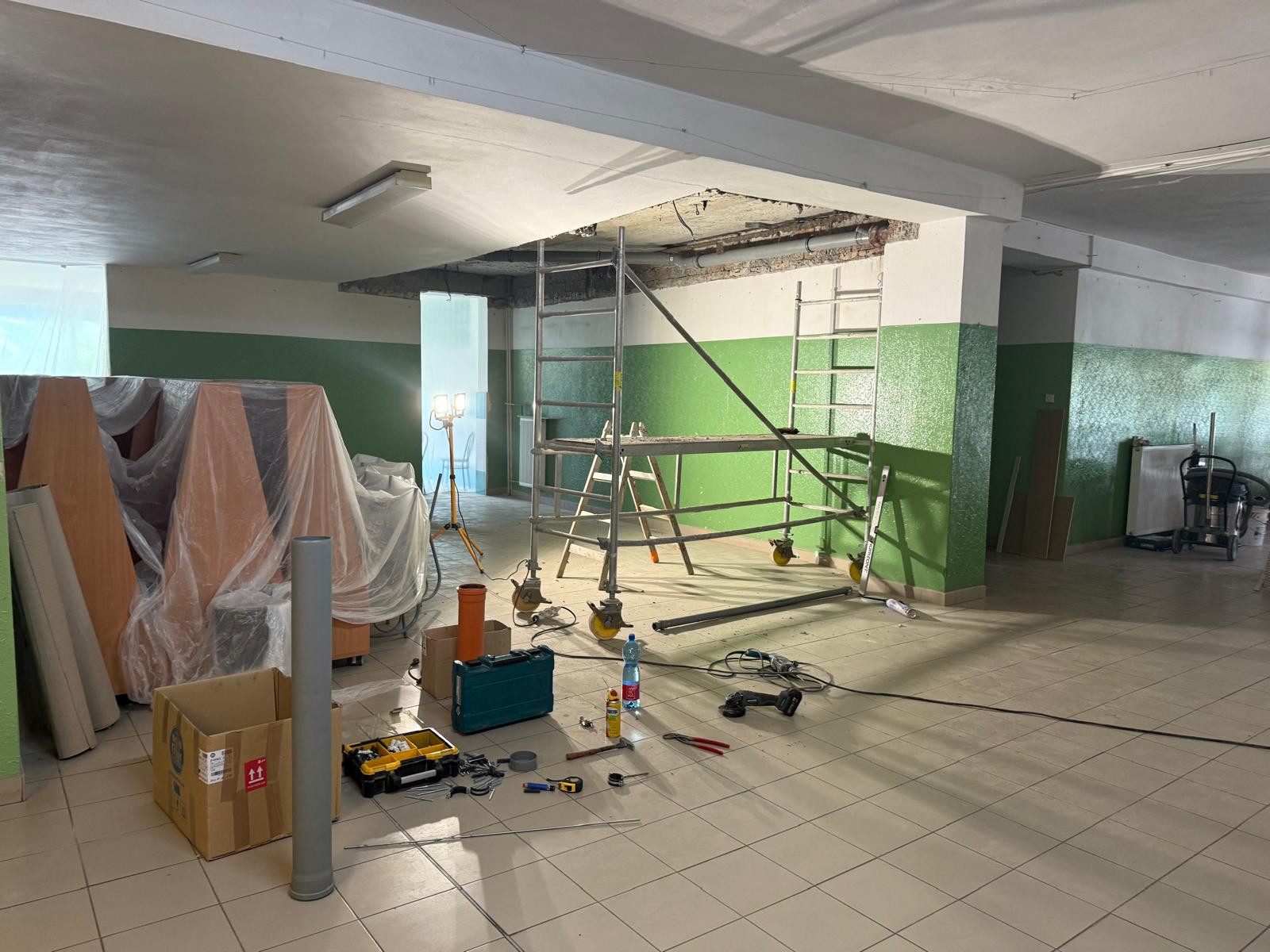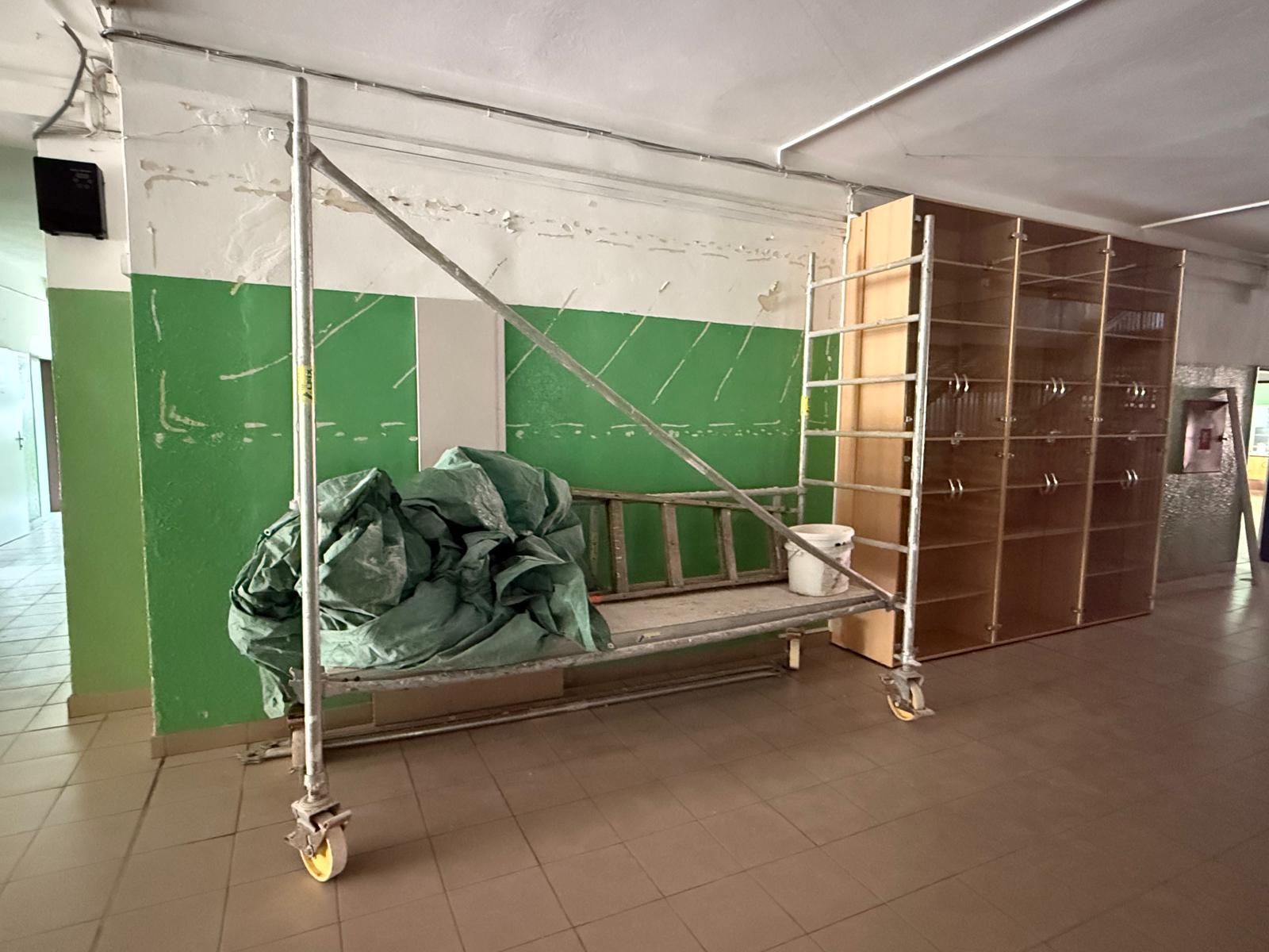 Pred koncom školského roka bola zbúraná nestabilná prepojovacia chodba medzi školou a telocvičňou, jedálňou a učebňami. Práce aktuálne zahŕňajú: