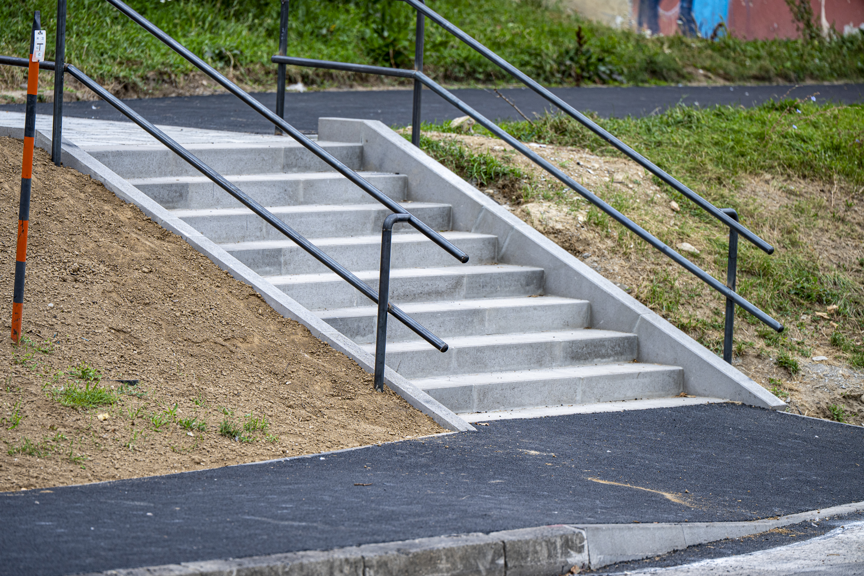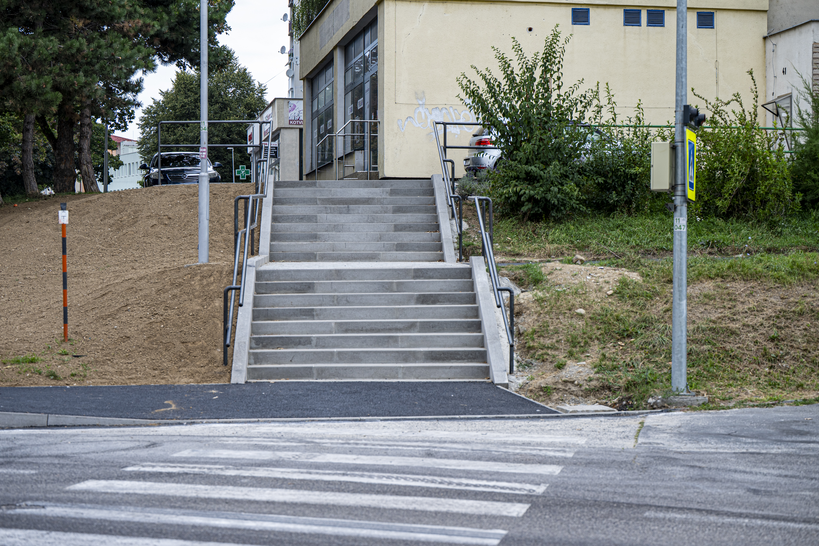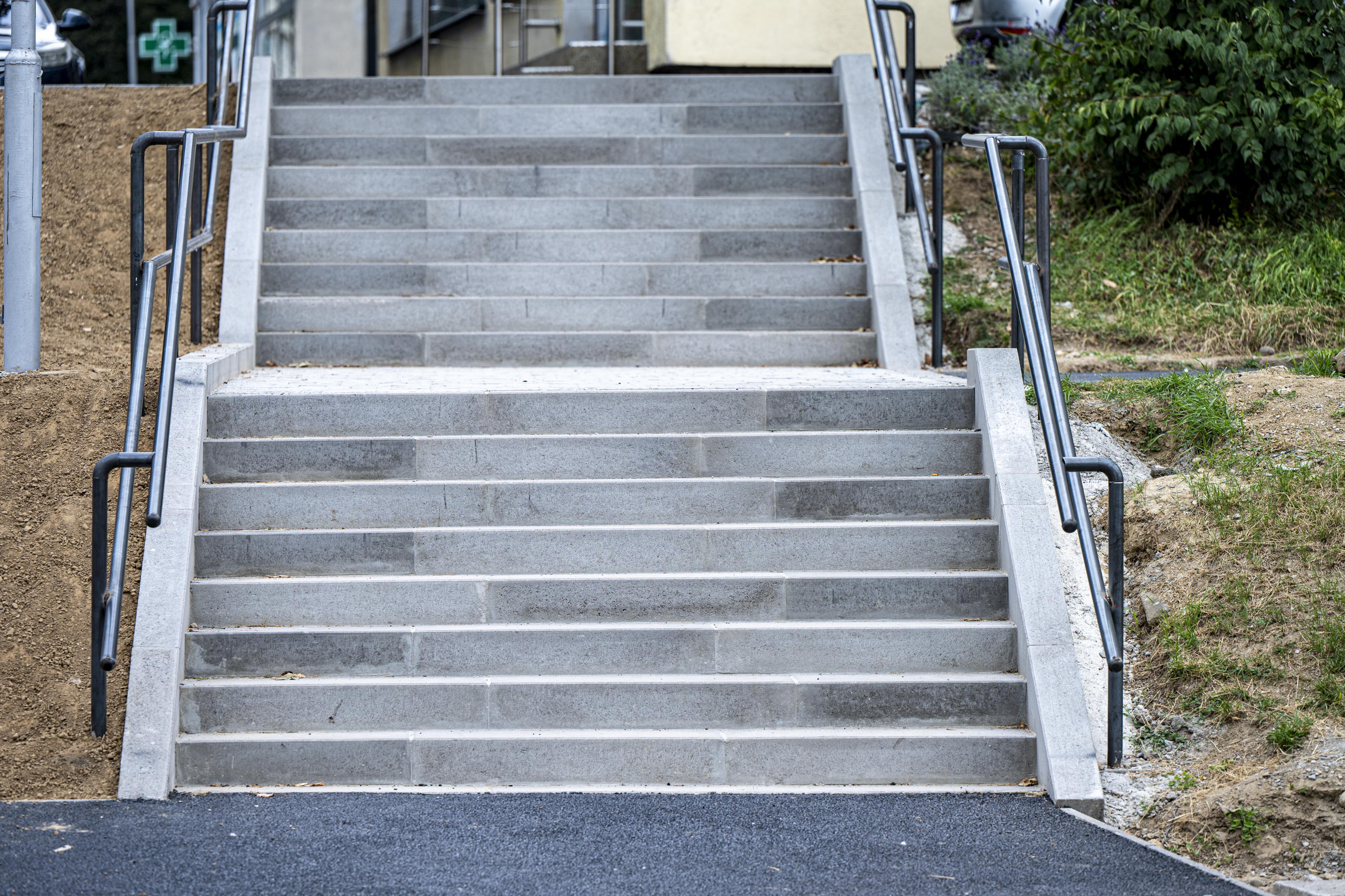 Rekonštrukciou prejde aj schodisko na opačnej strane cesty, vedúce k bytovým domom. V tejto lokalite pribudne jednoramenné schodisko z exteriérových blokov, čím sa zabezpečí funkčnosť a bezpečnosť.