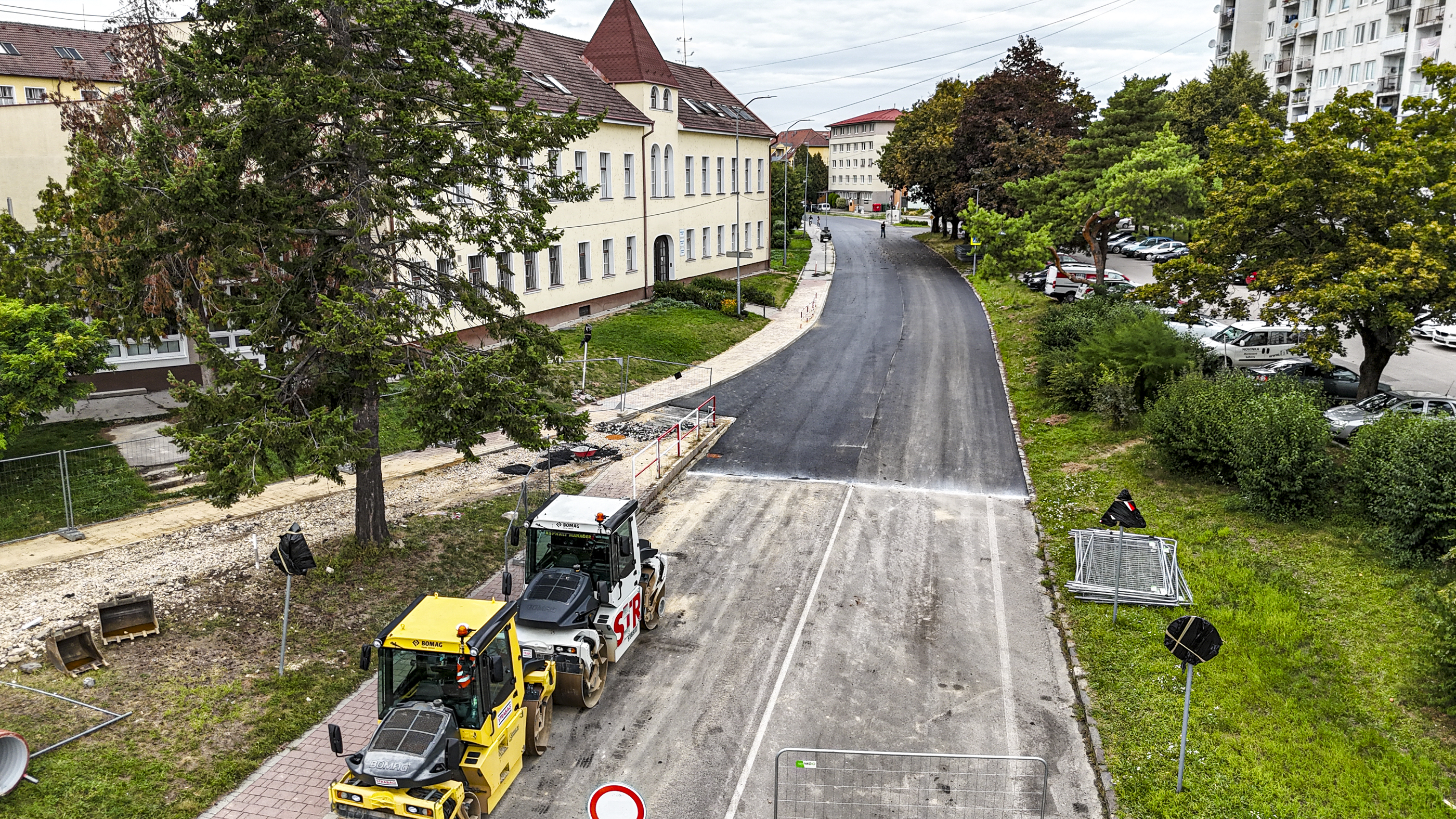 V priebehu nasledujúcich dní (po ukončení všetkých prác) bude na komunikácii realizované aj vodorovné dopravné značenie.